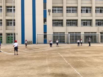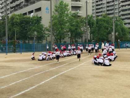 今日は曇り空でしたが、一日中涼しかったので、かえって運動には適した状態で、50メートル走と、ソフトボール投げを行いました。