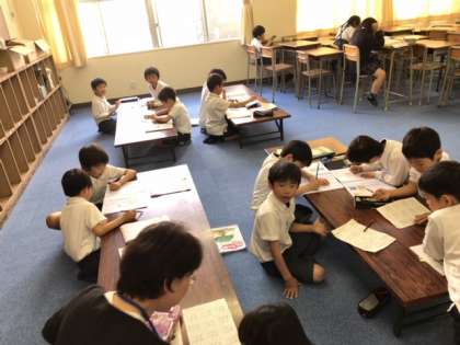 繰り上がりの足し算の問題で、教えあったりする姿も見られました。