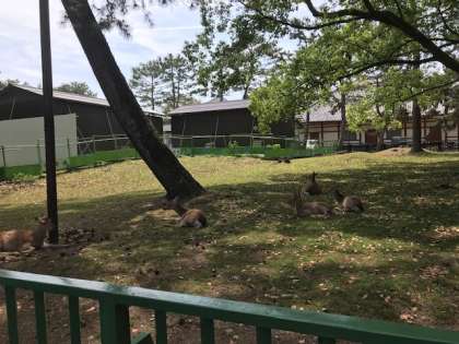 駅を降りてすぐ、鹿たちの歓迎にびっくり!