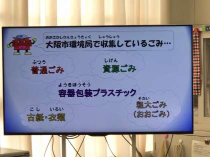 本日は、大阪市環境局の方にお越しいただき、ごみについての出前授業をしていただきました。