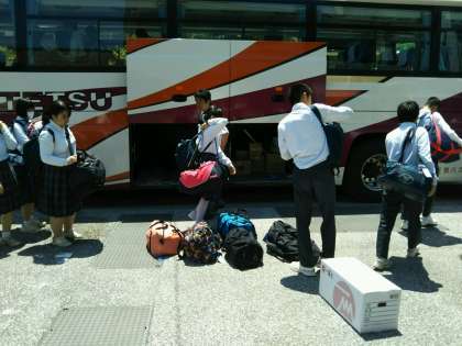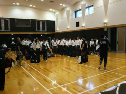 大豊町につきました。全員元気です。増水のため体育館で食事をとります。