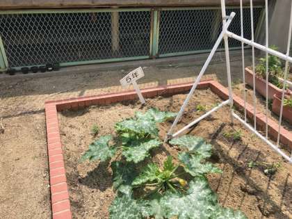 5年生の庭を見ると、ズッキーニが見事にできています。