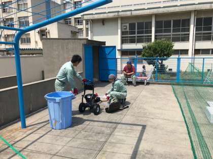 管理作業員さんが、色んなアイテムを駆使して、学校安全のために、あちこちを綺麗にしてくれています。