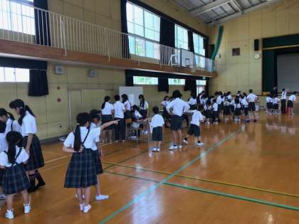 5・6年生がお兄さん・お姉さんとして1年生を優しく導く姿と、1年生の楽しそうな顔が印象的でした。