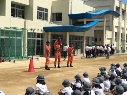 また、住之江消防署からは、消防隊員の皆さんにお越しいただき、避難時の注意点を教えていただきました。