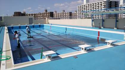管理作業員さんが、小学校のプールをキレイに掃除してくれました。