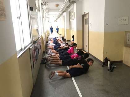 今日は天候が悪かったので、普段は外で練習することの多い部活動も、校舎内でトレーニングなどに励んでいました。