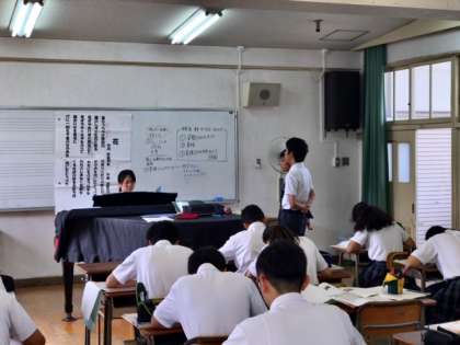 9年生の音楽の歌唱テストと、7年生の理科の授業の様子です。