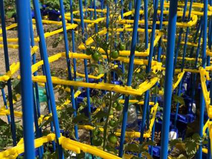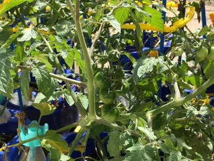 1年生が育てているミニトマト、たくさんの実がついてきました。色付くのはもう少しかかるかな?