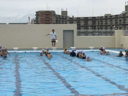 小学校では、本日からプール開きで、6年生と4年生が入りました。