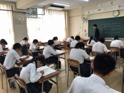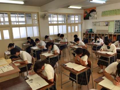 本日、中学校3年生のチャレンジテストを実施しています。みんな真剣です!
