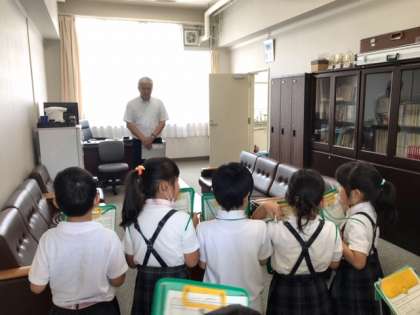 校長室にある物や、普段のお仕事について、校長先生に質問しました。