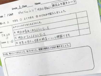 ふりかえりシートに「何ができるようになったか」をそれぞれが振り返り、個々の課題と今後の学習効率を高めます。