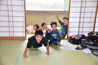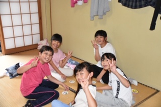 部屋ごとにお風呂に入っています。その間、ほかの部屋ではトランプやUNOでゆっくり過ごしています。