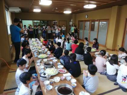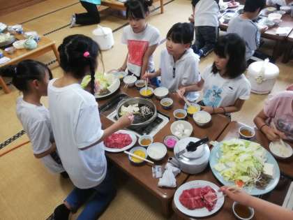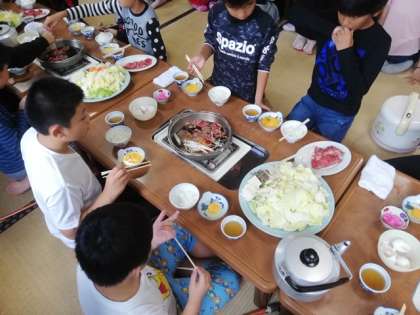 夕食は、すき焼きです。わいわい、楽しみながら、食べています。