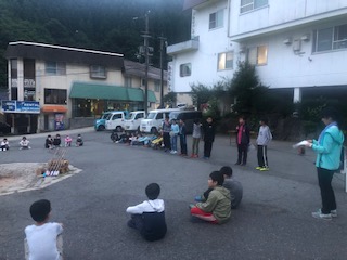 夕食も終えて、外は少し肌寒くなってきました。夜のプログラム、キャンプファイヤーの始まりです。