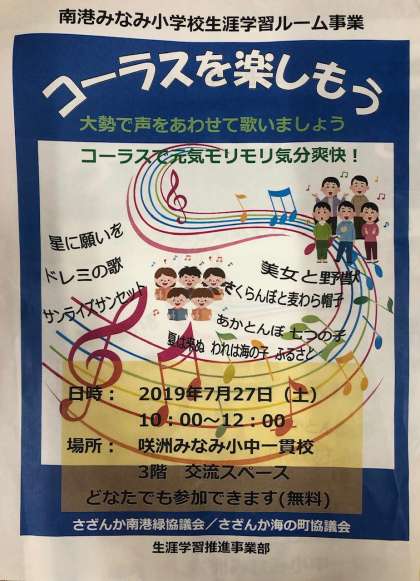 本日、小学校生涯学習事業として、コール ラ ポール の皆さんによるコーラス体験、演奏会が交流スペースにて開催されました。