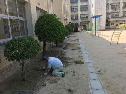 広いグラウンドや中庭もなる本校の敷地内では、油断するとすぐに草が生えてきます。