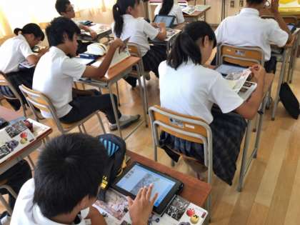 美術の吉兼先生の授業で、タプレットPCを使って、作品の見方や感じ方を広げる授業を行なっていました。