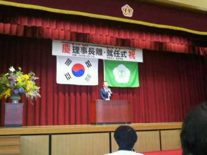 交流をしている金剛学園の理事長の就任式がありました。5年生で今年も交流をします。