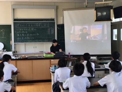 2時間目の理科では、玉置先生による、ガスバーナーの安全な使い方を、ビデオを用いて解説しました。