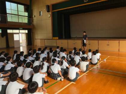 中学校の卯野先生から、部活動の入部についての説明がありました。5・6年生は、半年ごとに部活動の見直しをすることができます。