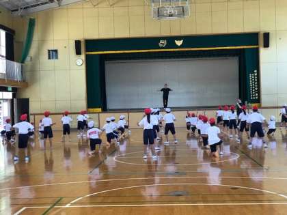 小学校では、各学年で団体演技の練習が進められています。写真は昨日の3年生の様子です。