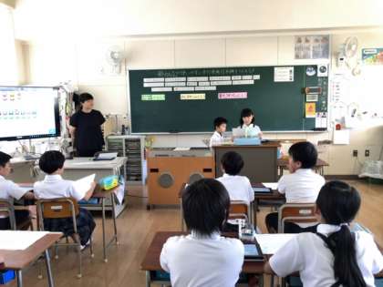 アーテックロボという教材を使って、それぞれのペアで工夫して作った歩行者用信号機を発表し合いました。