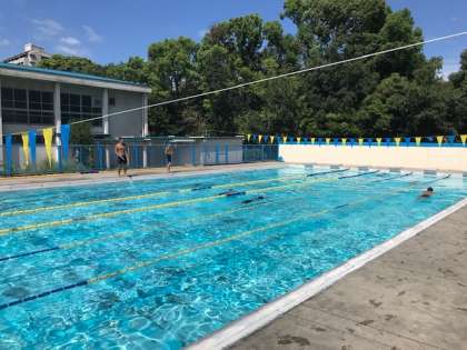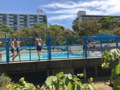 プールで泳ぐ中学生、気持ち良さそうです。