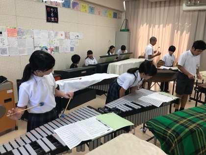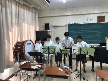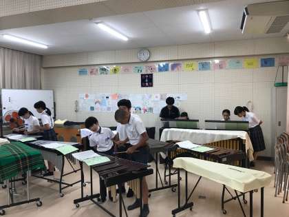 入ってみると、小学生が授業で、RADWIMPSの「前前前世」の楽譜を見ながら練習していました。