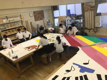 文化発表会の門を、文化行事実行委員会、せいとかい、ボランティアのメンバーが作ってくれています。完成が楽しみです。