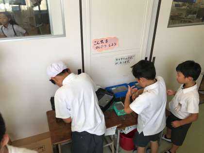 休み時間、昆虫好きの子ども達が、虫かごを取り囲んで賑わっています。