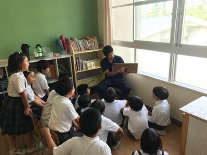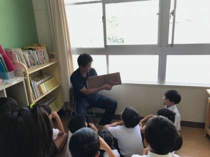 お昼休みに、荒井先生が、3年生の子ども達に絵本の読み聞かせをしてくれました。