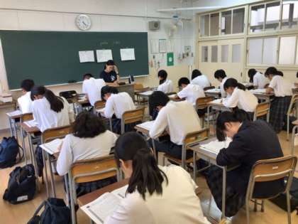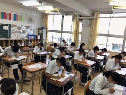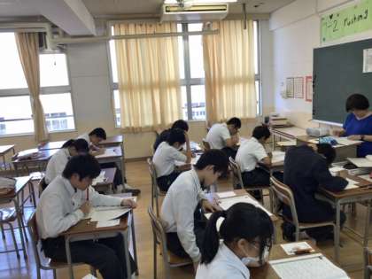 放課後、中学校の各教室で、希望者が級ごとに英語検定を実施しました。