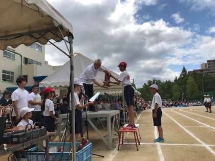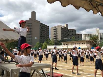 優勝カップと準優勝盾の返還の後、ラジオ体操です。