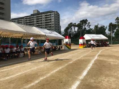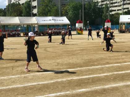 ?3年団体競技「ごきげんだぜっ! 〜Let’s party〜」、5年個人走「ゴールを目指せ!」。