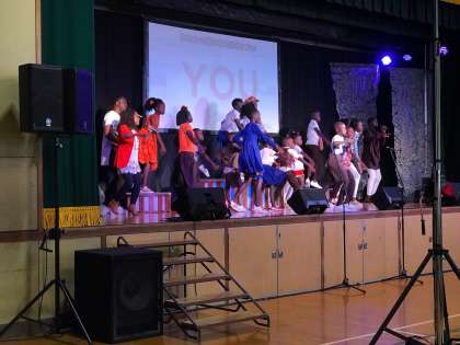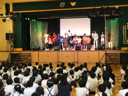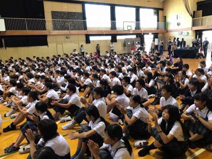 音楽に合わせたダンスのリズムにつられて、本校の子ども達からも拍手が出たきます。