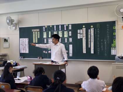 2時間目、5年生の教室で、新任の先生の授業力向上のため、研究授業を行いました。