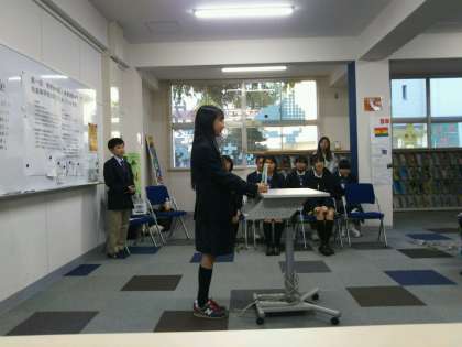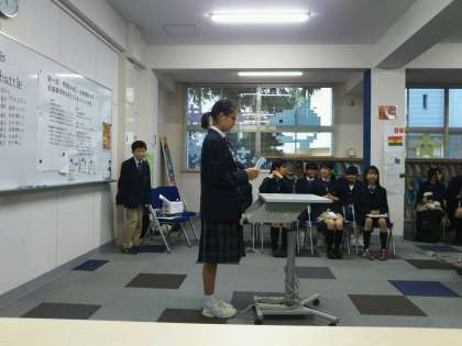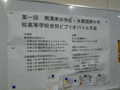 水都国際中高一貫校と本校の中学校2年生がビブリオバトル大会を行いました。