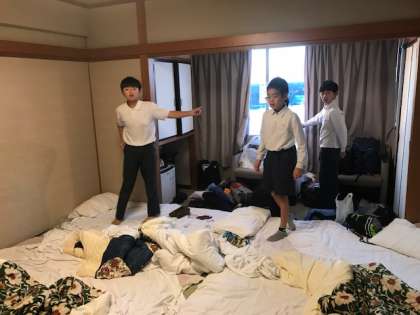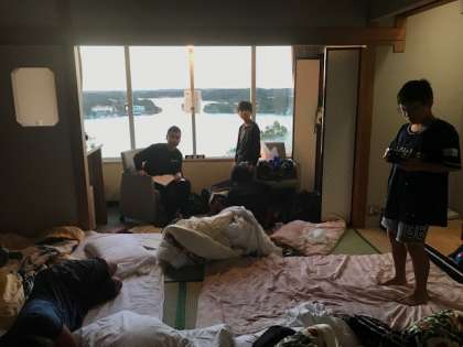 顔を洗って、布団を畳んだり、荷物整理をしたり。