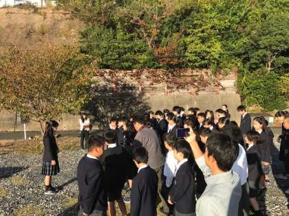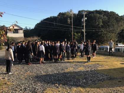 広場に集まって、朝の集会、ラジオ体操を行いました。