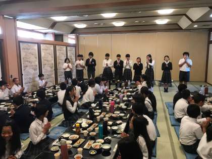 水筒にお茶を補給して、この旅館での最後の食事。