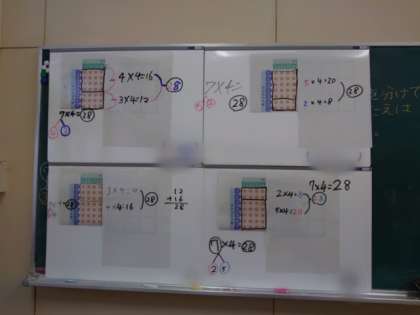7×4の、かけられる数(7)を分けて計算しました。