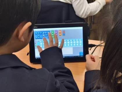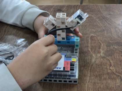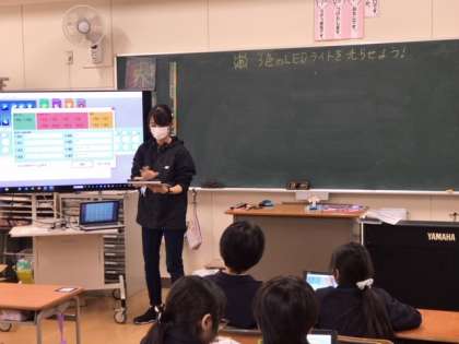 アーテックロボという、センサーやモーターが入ったロボットプログラミングのセットを使って、今回は、3色のLEDをどうやって光らせるか、夢中になって取り組んでいました。