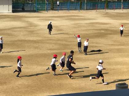 中学校体育の近藤先生が、一緒になって走り回っています。そりゃあ、楽しいですよね。