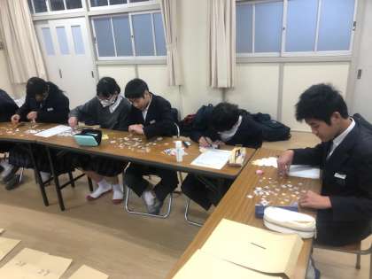 ベルマークの仕分け作業を生徒議会メンバーでしました。番号ごとに封筒に分けて入れています。この作業も二回目なので、生徒たちも次々に進めていってくれました。