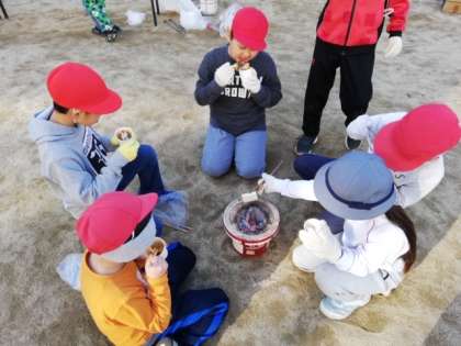 今度は、ついた火を利用してお餅を焼きました。苦労して焼いたお餅は、最高に美味しかったようです。