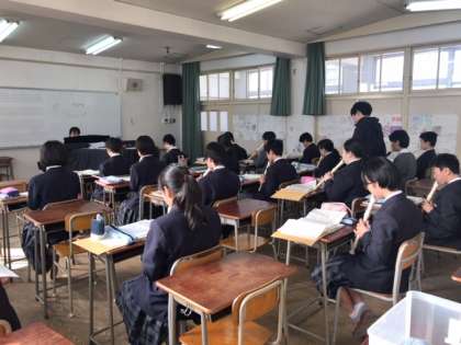8年生の音楽では、リコーダーで「テキーラ」を演奏。少し、恥ずかしさが出てたかな?