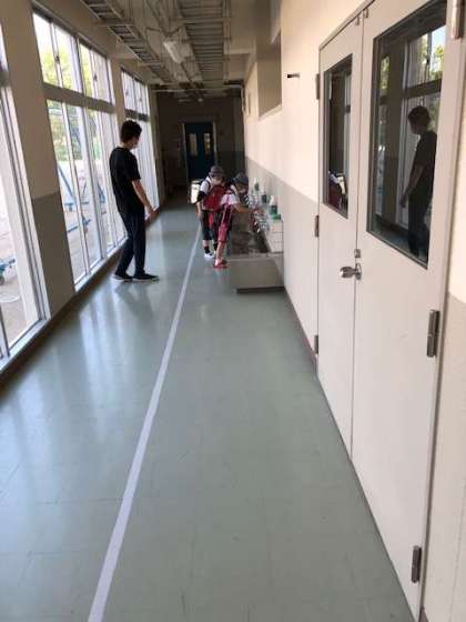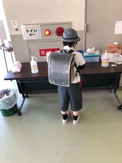 5月14日(木)登校日3日目です。本日は2年生と4年生が対象です。最初に手洗い・消毒を必ず行ってから、教室に入ります。