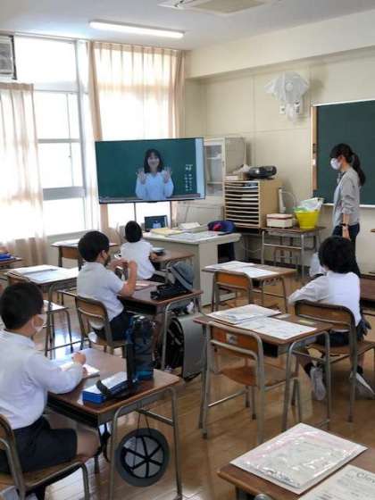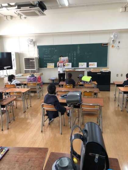 教室では、手洗い推奨の映像を見た後、実際に手洗いの練習をしたり、紙芝居を楽しんだりしています。